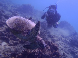 ブログアップが遅くなりましたが、無事にハワイから帰国しております。友人がハワイで挙式をあげるってことで参列しに行ったのです。ただ、1人で参加したので、結婚式以外は基本的に1人ぼっちなのでどう過ごそうかといろいろ考えあぐねました。初ハワイが1人とはなかなか寂しいものですぞ(笑)そしていろいろ考えたあげく「スキューバダイビング」をしてみよう!と。しかもせっかくだから体験ダイビングじゃなく、ライセンスを取得しちゃえ!と。これは大正解でした!ライセンス取得に2日間、3日目にボートに乗ってファンダイビングをして、という充実のハワイ旅行となりました♪♪