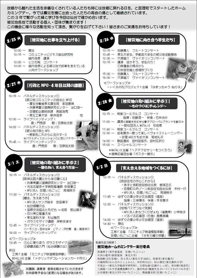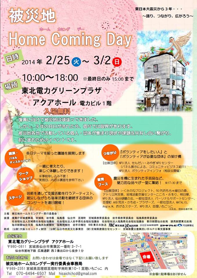 3月1日、仙台で開催される「被災者ホームカミングデー」に参加してきます。