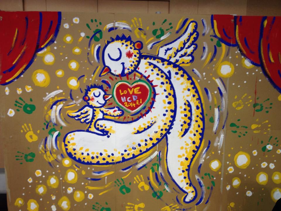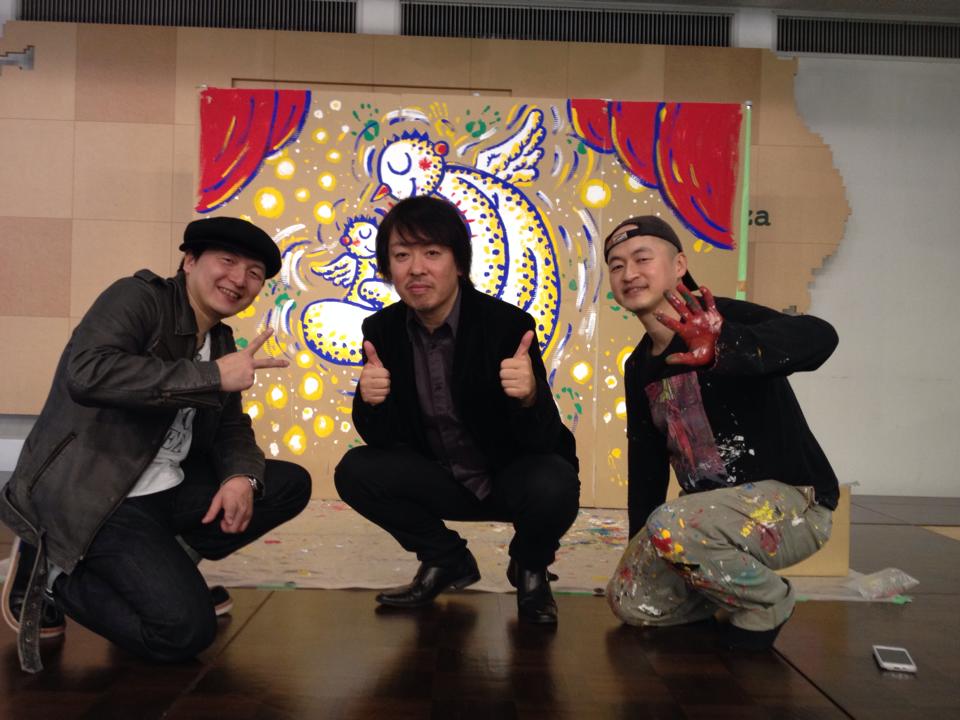 2月28日はイベント関係者などを集めたライブを居酒屋で行いました。写真は高岡洋介画伯のライブペインティング作品!