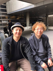 1月のアメリカのNAMM SHOWへ一緒に行きました。ロサンゼルス空港へ着いたばかりで疲れた顔の二人の写真(笑)