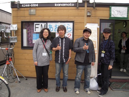 これは亘理町の臨時災害放送局。実は以前より、ここのFMで僕のCD「空の音色」を流してもらっていました。そして今回おじゃましておしゃべりと生演奏を♪♪ 「空の音色」を演奏しました。綺麗な空をまた見上げれるようになりますように…。そんな気持ちを込めて演奏しました。