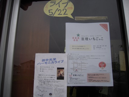 そして22日「亘理」へ。向かう先は、期間限定で設けられたコミュニティ・カフェ・レストラン「亘理いちごっこ」。ここは被災者の方は無料で、他の方は1コイン以上の「気持ち」を支払い、おいしいご飯が食べれる場所。調理、運営をしている方々は全てボランティア。みんなでここに集まり、語り合い、つながりが出来てゆけば、という場所。今、被災地にはこのような場所がもっとも必要なのでしょう。ここで「ディナーライブ」を行なったのです!
